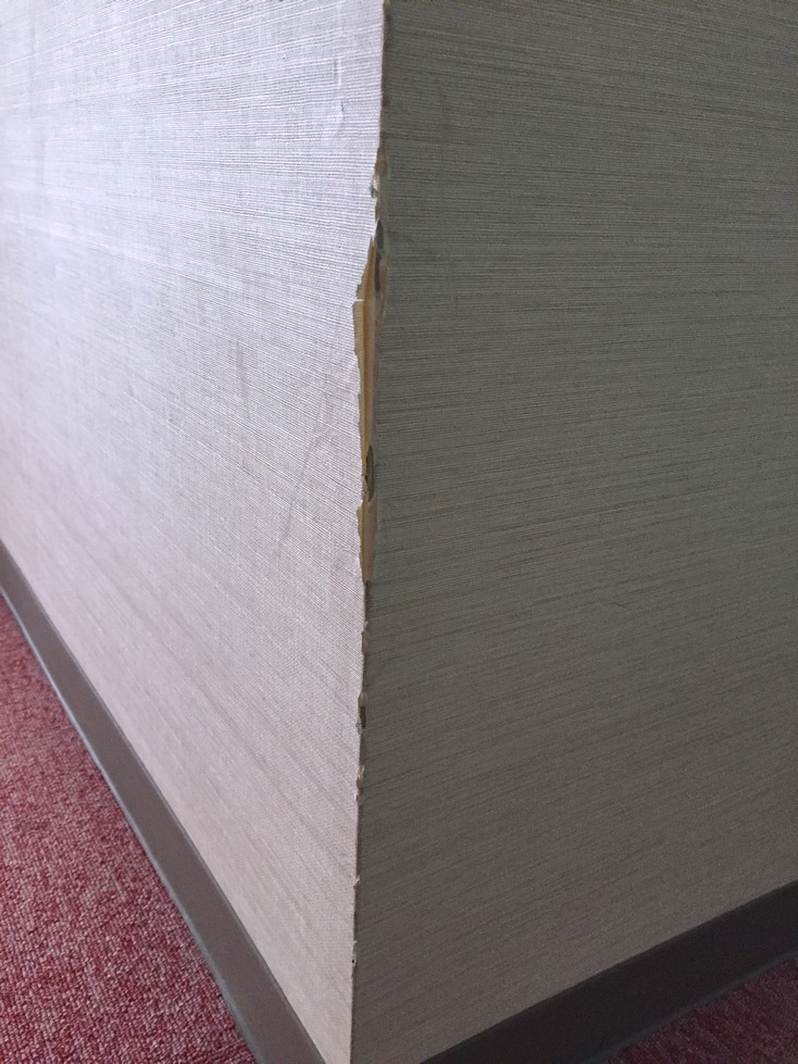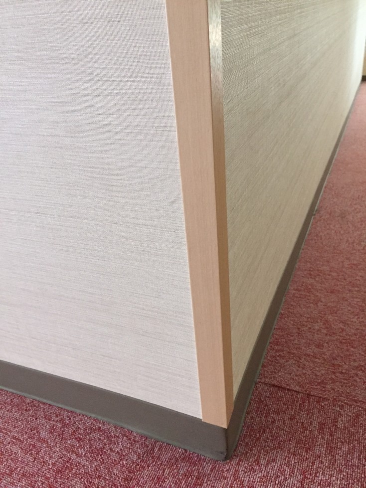 先日のホテル様のクロス補修と同時にご依頼があったのが、この通路の角の補強です。レストランへ行く通路なのですが、曲がり角の
