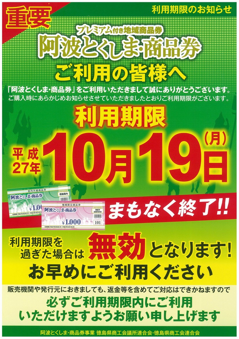 とくしま商品券 期限間近!