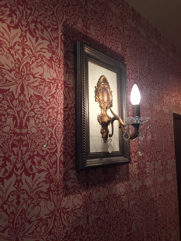 店内に貼ってあったのはウイリアムモリスの壁紙「ブレアラビット」。