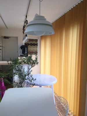 ぐるぐる@店長です。 以前からご贔屓頂いておりますA社さまより、コンテナハウスの中の 窓周り工事のご依頼を受けました。 木の匂いがするコンテナハウスには大きな窓があり、西日がかなり当たる 掃き出し窓にはバーチカルブラインドを、腰窓にはロールスクリーンを お選び頂きました。 バーチカルブラインドはポップな黄色、南側の小窓のロールスクリーンは 遮光生地のプリント柄です。コーヒー豆のようなカカオ豆のような?面白い 柄なのですが、よくお似合いですね(^o^) こんな離れがあると、趣味のお部屋などにいいですよね♪ ご注文ありがとうございました!