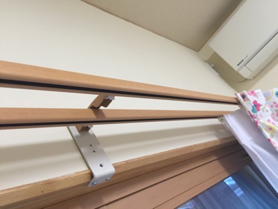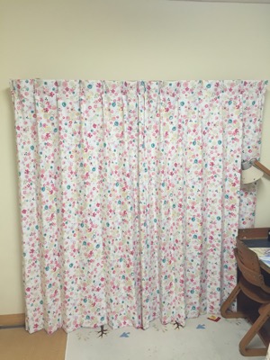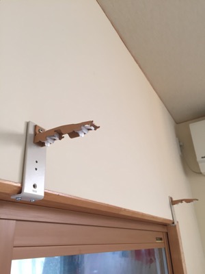こんにちは、あにんつです。 シェードからカーテンの掛け替えです。 窓枠表面が斜めなのでレールのブラケットが正面付けで付ける事が出来ません😢補助金物も使って取付ける事にしました💡 ラブリーな子供部屋になりましたね💐