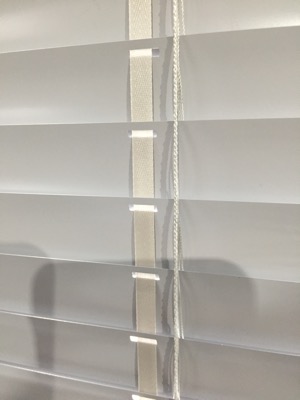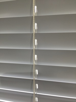 左は従来のブラインド、右が高機能ブラインドです。構造上スラット(はね) に穴が