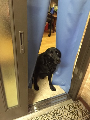 こんにちは、あにんつです。 お客様より、「この子が外に出る時、戸は自分で開けるんだけど出た後閉めてくれないから寒いんよ」と、玄関に付ける寒さ避けのカーテンをご依頼頂きました。 戸を開けたままにする、この子です。 かわいい ですね💕 下からの隙間風を防ぐ為に丈を2㎝長くしています。 真ん中はクロスオーバーにしています。 ワンちゃん、出てきて🐕と、言ったら端から出て来てしまいました😀 せっかく真ん中が開いてるから、ここから出て欲しいなぁ😊 そうそう、そこから👍 これでご主人様も寒くないですね