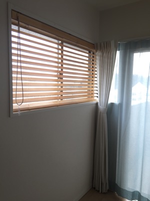 先日紹介したカーテンの横には、ウッドブラインドを付けました。