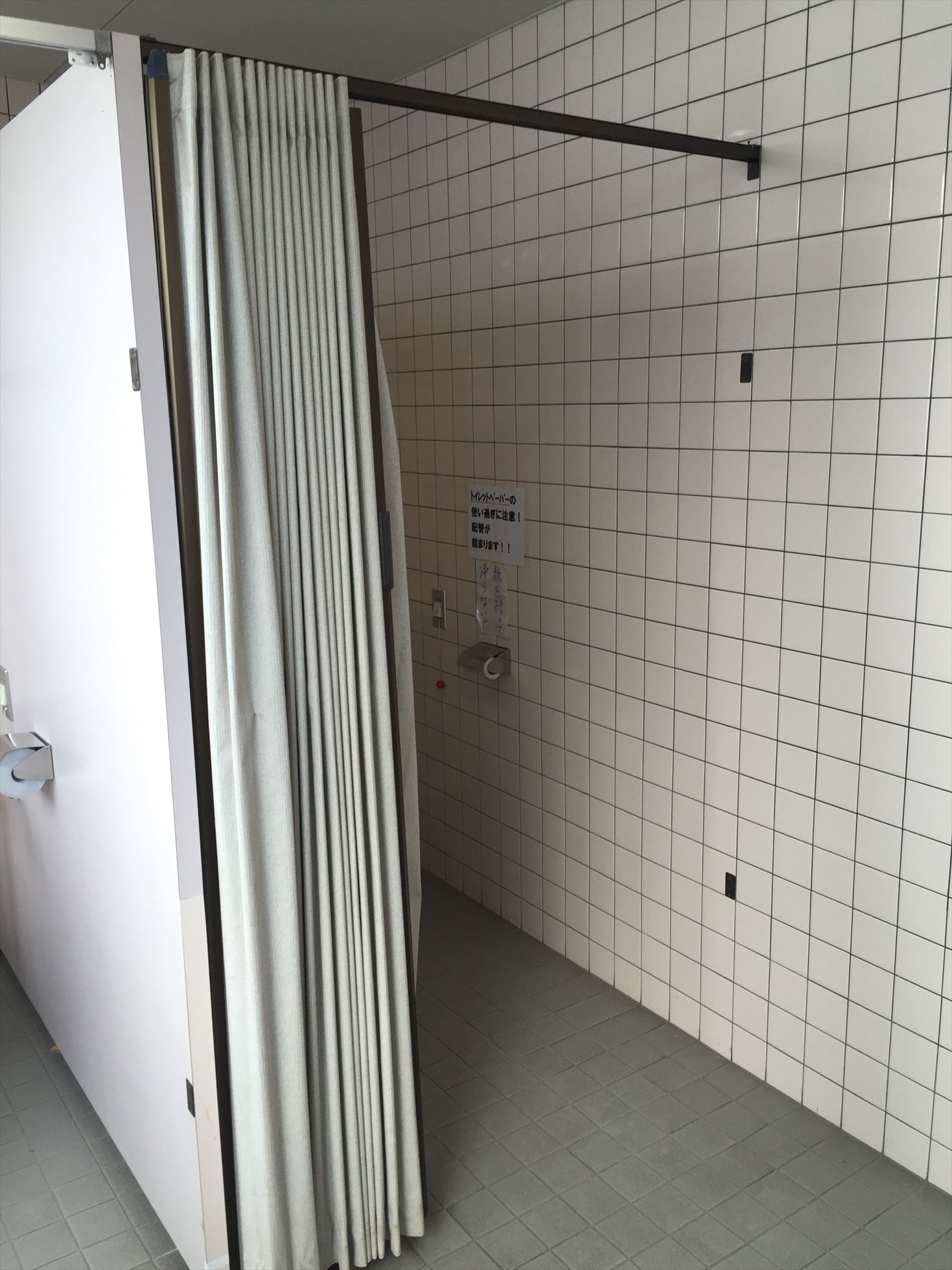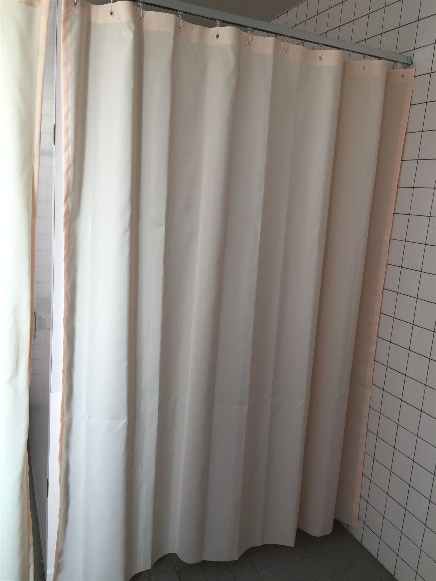 年数が経ち壊れてしまったアコーデオンカーテンからシャワーカーテンへ。