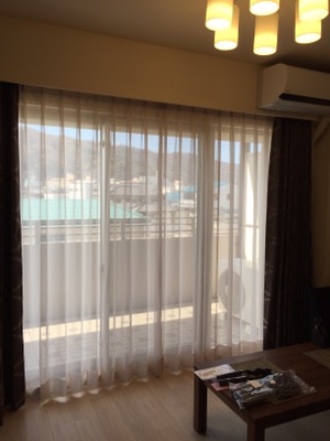 先日納品が完了したお客様。 お忙しい合間に何度も足を運んでいただきました。 落ち着いた色合いのドレープにベージュがかったレースカーテンを合わせています。 モダンなイメージのカーテンなのですが お部屋全体の雰囲気が少しクラッシックになりました。 タッセルの印象も一役買っているようです 月うさぎ