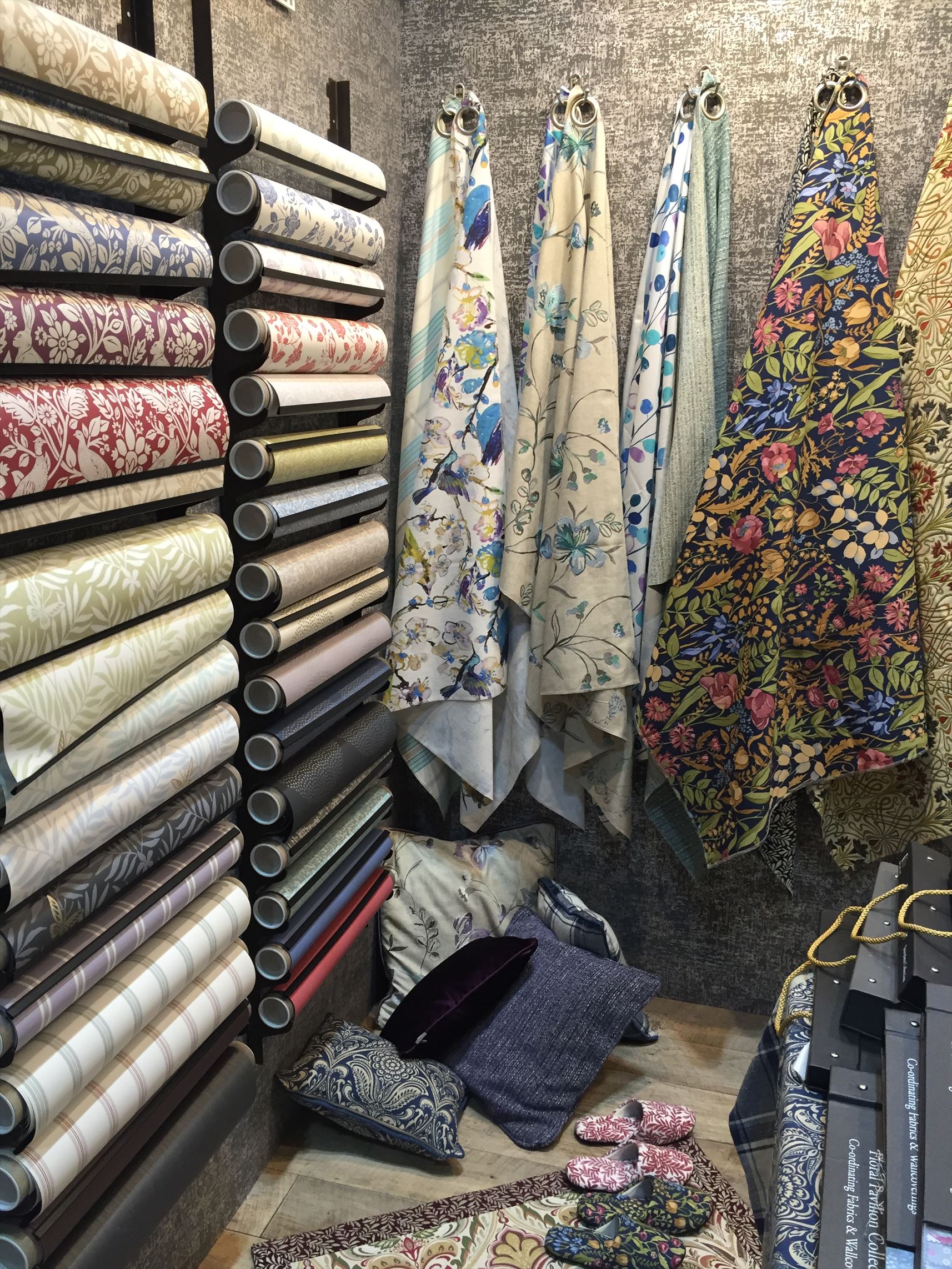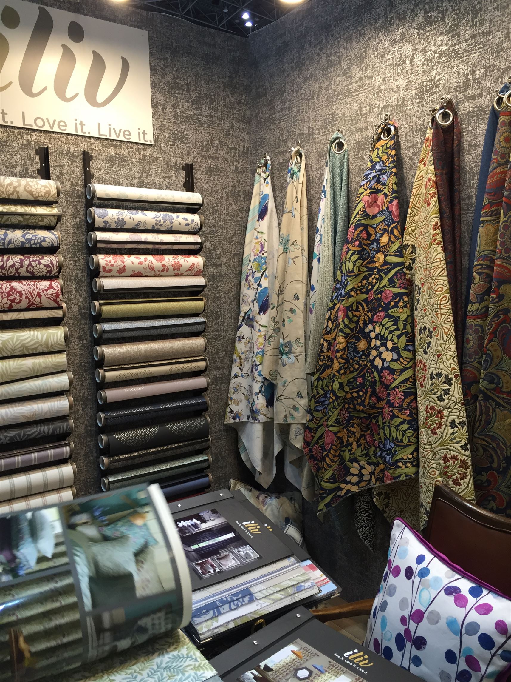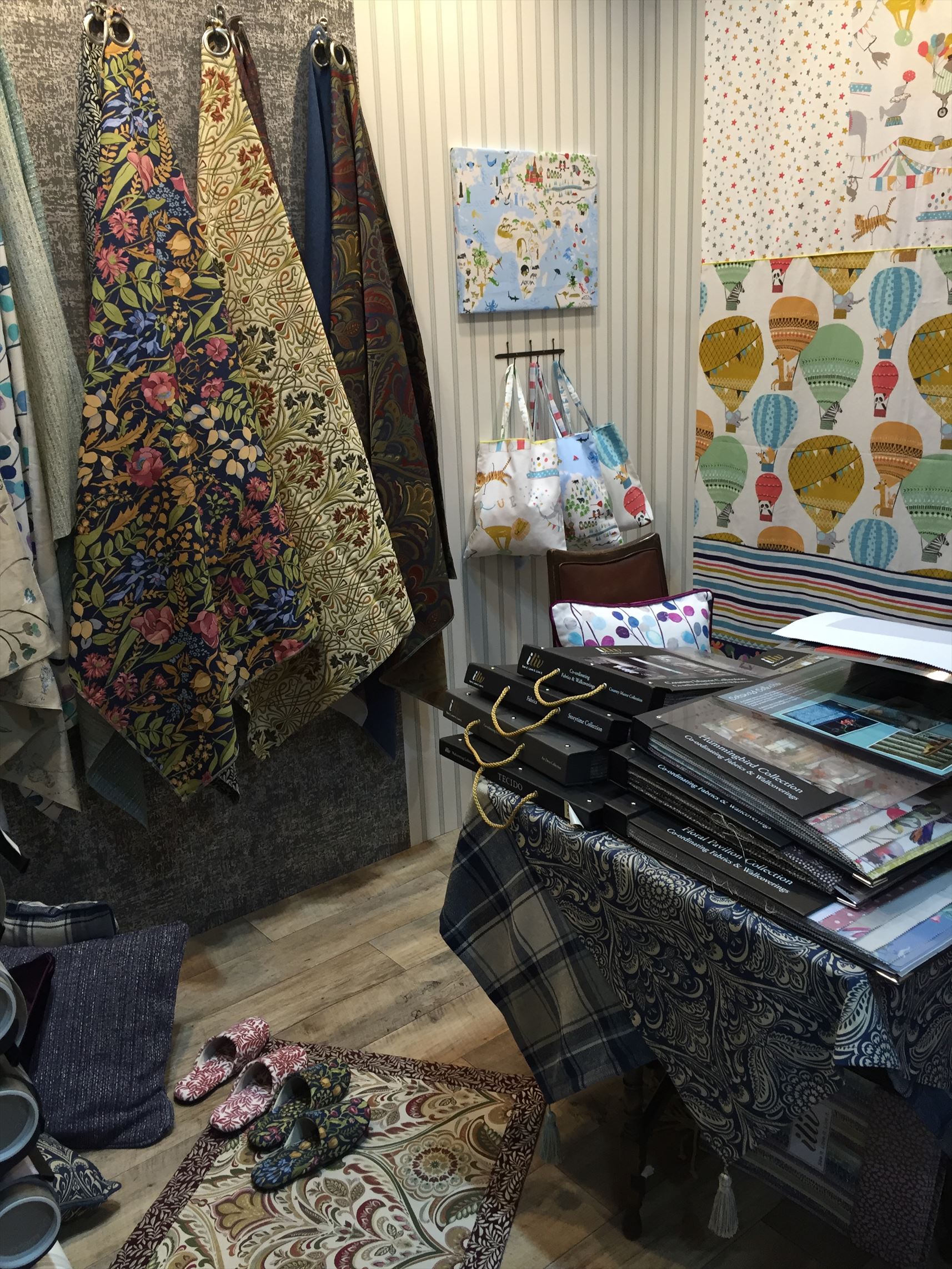 デコオンは海外の様々なブランドが出展し、それぞれ個性的な輸入生地や壁紙を
