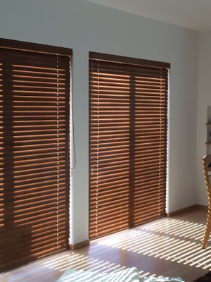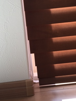 本当なら5ミリずつ小さくして、高さも羽根1枚だけのカットでも良かったのですが、メーカーの対応が1センチ単位であったこと、また羽根1枚ではブラインドを閉じた時に巾木をこすってしまう可能性もあったのでこのようになりました。