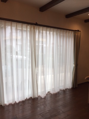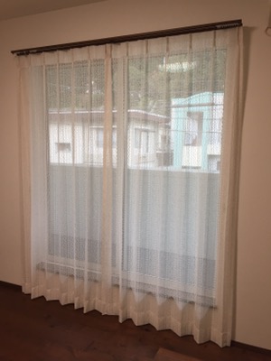 ただ、リビングな決められたドレープカーテンには何もないシンプルなレースがぴったり合いました。