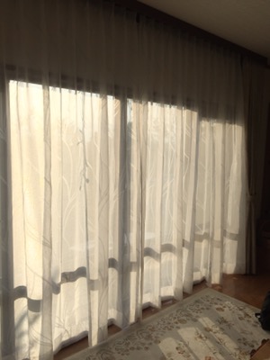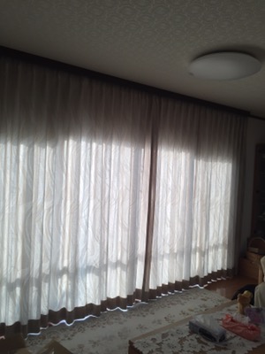 リビングのドレープとレース、どちらも掛け替えさせていただいたお客様です。