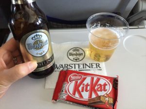 あったので、せっかくだからとビールで機内でのおやつはキットカット