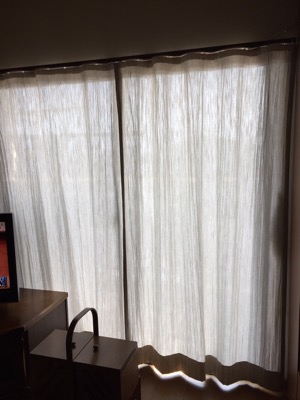 月うさぎです。 シンプルなカーテンに掛け替えたい❗️ マンションの上の方の階にお住まいのお客様で、とにかくシンプルにオシャレに暮らしていらっしゃる方でした。 リビングはilivの生地でヒダなしのプレーンカーテンです。 生地そのものにシワ加工してあるのでヒダ無しでも表情がありますよね。