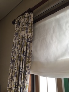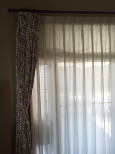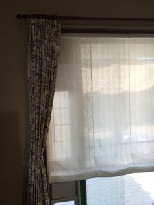 こんにちは、あにんつです。 現在、レースカーテンを付けているのですがプレーンシェードに変えて上下に開閉したい。と、お電話を頂きました。 カタログを持ってお伺いし、何点かお選び頂き、後日お選びのサンプルとご提案のサンプルをお持ちしました。 昼夜、室内が見えにくいウェーブロンをご希望でしたので、夜の感じも見て頂きました。 お選び頂いたのは、モールが可愛いこちらのレースです💕 レースカーテンから プレーンシェードに 北欧柄のドレープカーテンともバッチリです👍