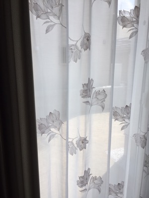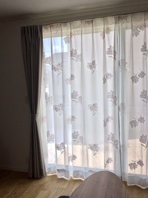 リビングの大きな窓にシンプルな無地のカーテンを選ばれました。