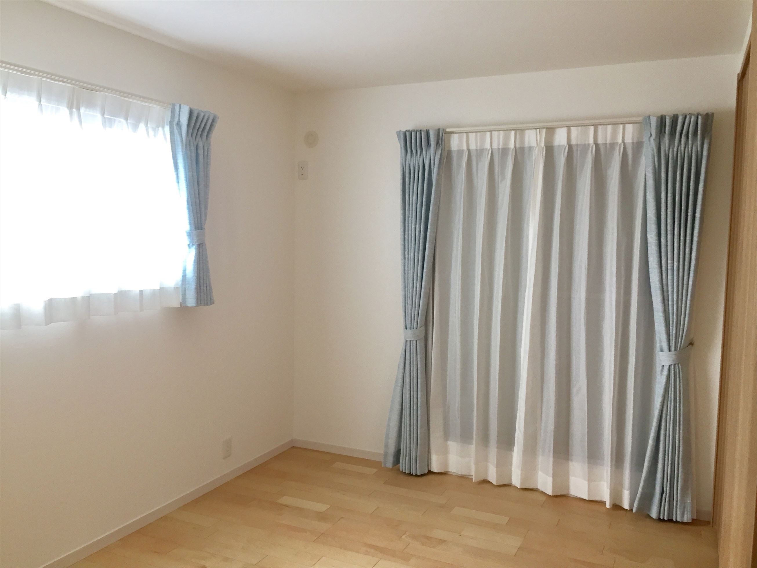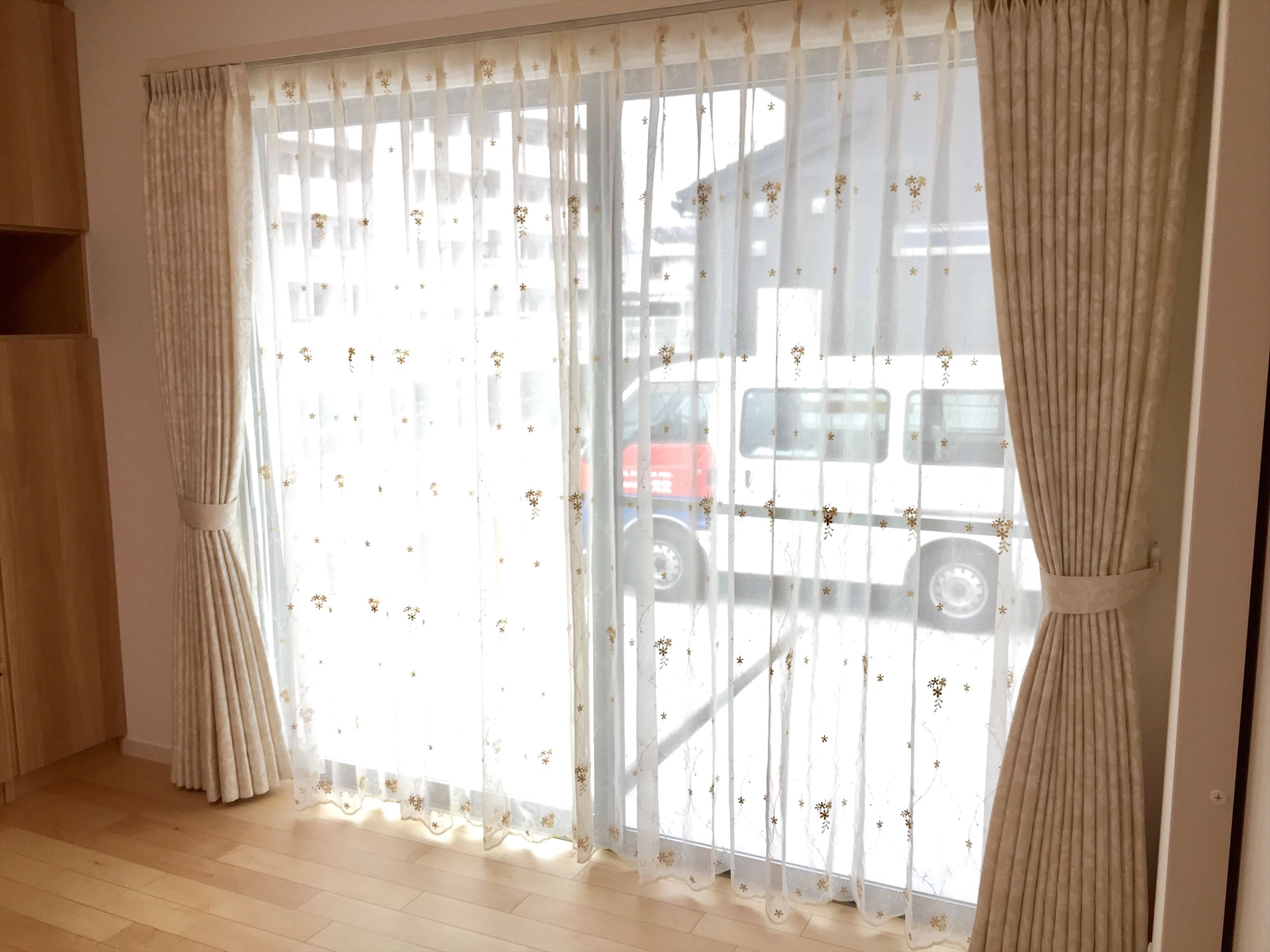 小窓の方は位置が高いので、カーテンの長さを通常より少し長めにして