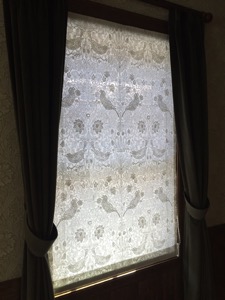 今日は、刺繍レースのプレーンシェードを紹介します😌 Pure Morris いちご泥棒の刺繍レースです。
