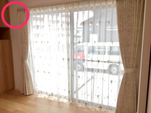 カーテンレールと干渉する高さに扉があります。