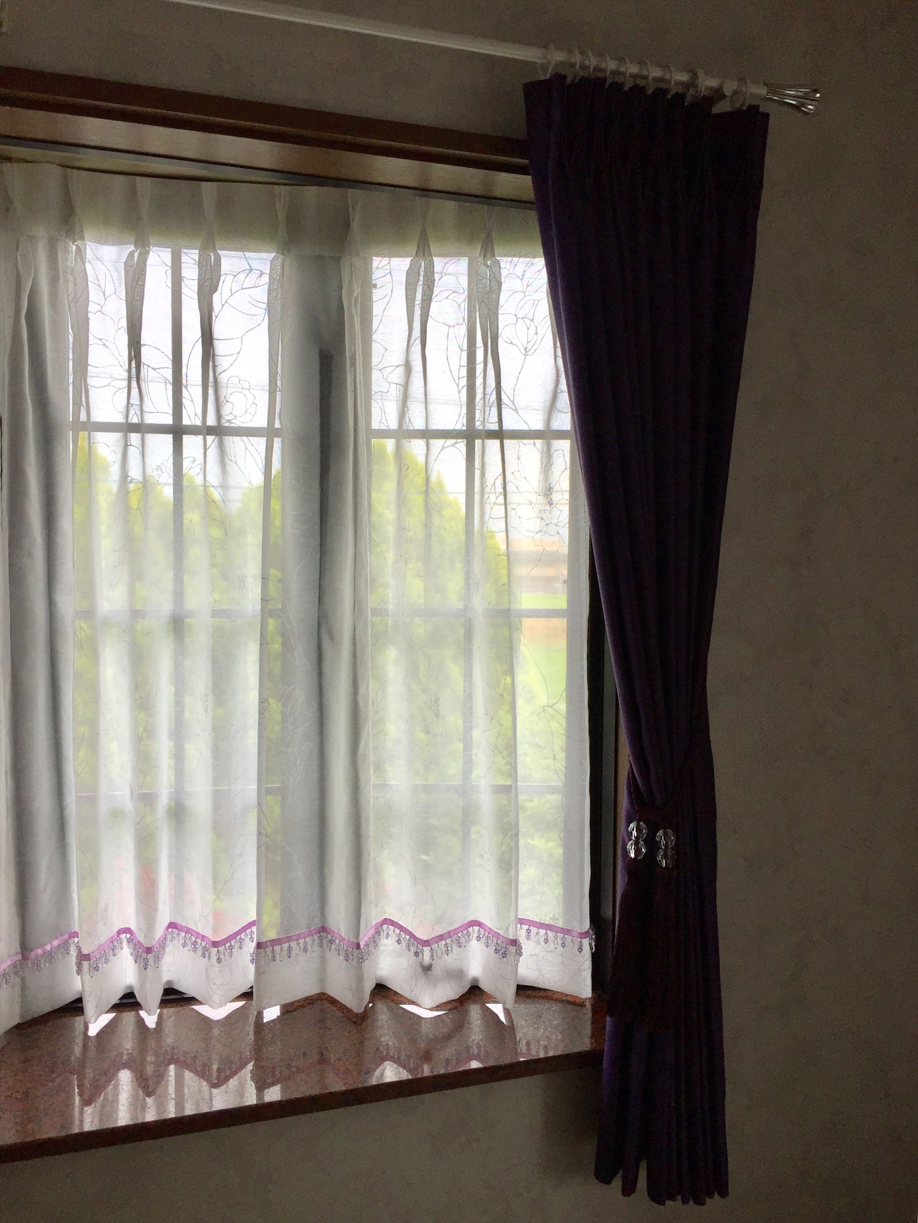 ジャクリーヌでキラキラ感をプラス。出窓のレースはシルバーのラメで花柄が
