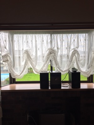 そこで出窓のレールを生かしたままでバルーンシェードのようなレースカーテンを付けました。