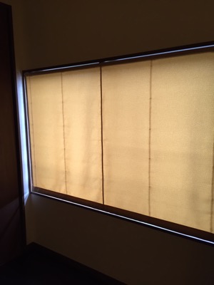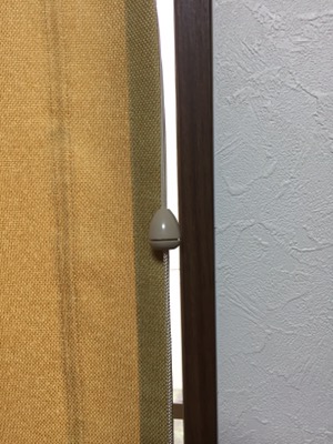月うさぎです。 子供部屋につけたプレーンシェード、生地は黄色です。 標準は白なのですが、今回、シェードの器械は窓枠に合わせてブラウン、コード、コード止めは生地に合わせてベージュにしてみました。 目立たず、きれいに収まりました。