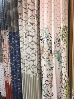 全て、というわけにはいきませんが、できるだけたくさんの生地を皆様に届けたい思いでこういう展示にしてありますが、こういうカーテンに出来上がるわけではありません。