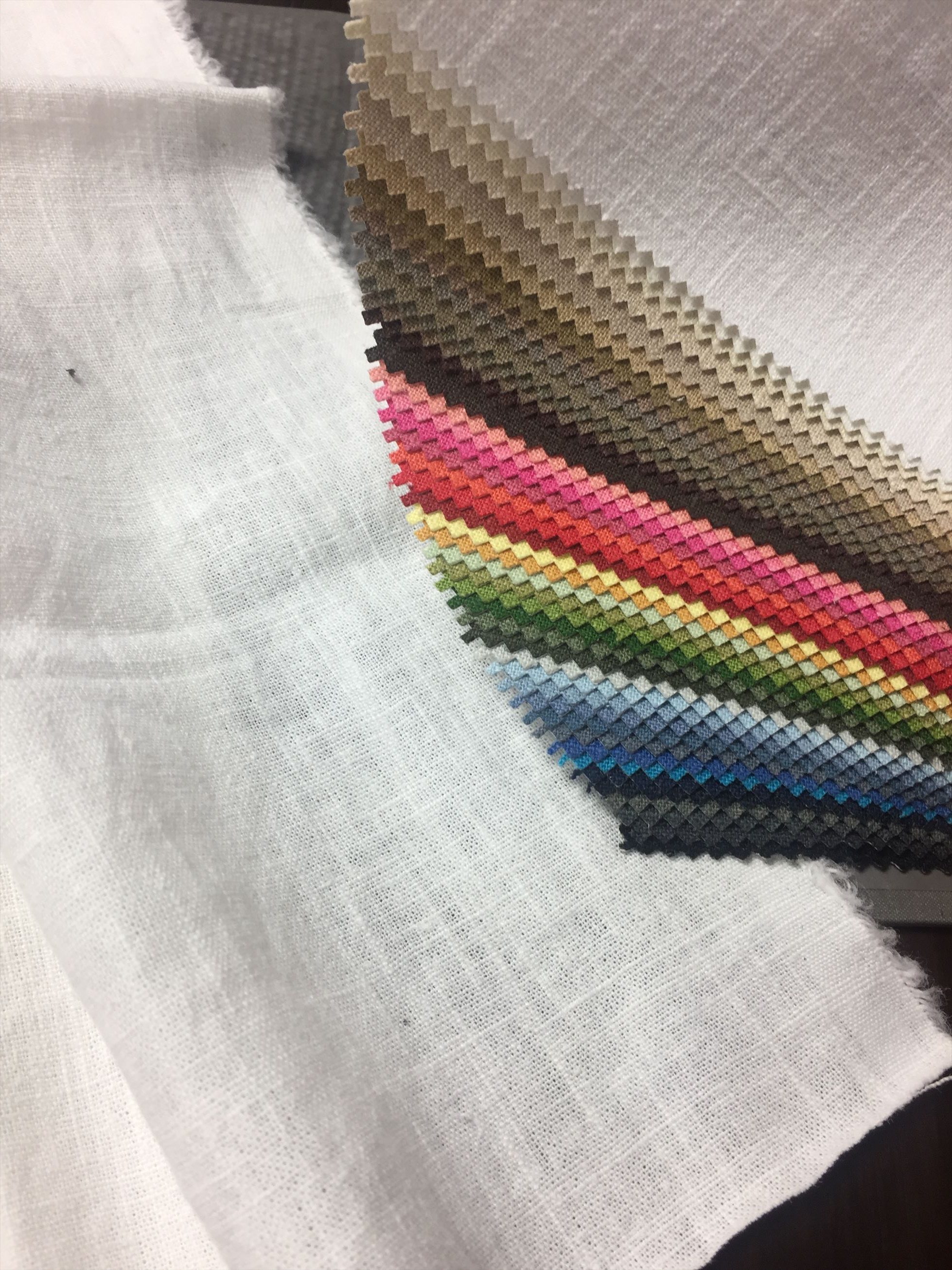 ぐるぐる@店長です。 新しく入った麻100%の生地を紹介します! とにかくいろんな色があるんですよ~、なんと全部で45色 最近流行りのリネン・コットンなどのカーテンはナチュラルな色味のものが多い ですよね。でもこんなにカラフルならまた違った印象です ビビッドな色を差し色にしたナチュラルインテリアもお薦めです 200cm×200cm(価格は税込です) 1.5倍ヒダ 約37,000円 2倍ヒダ 約55,000円