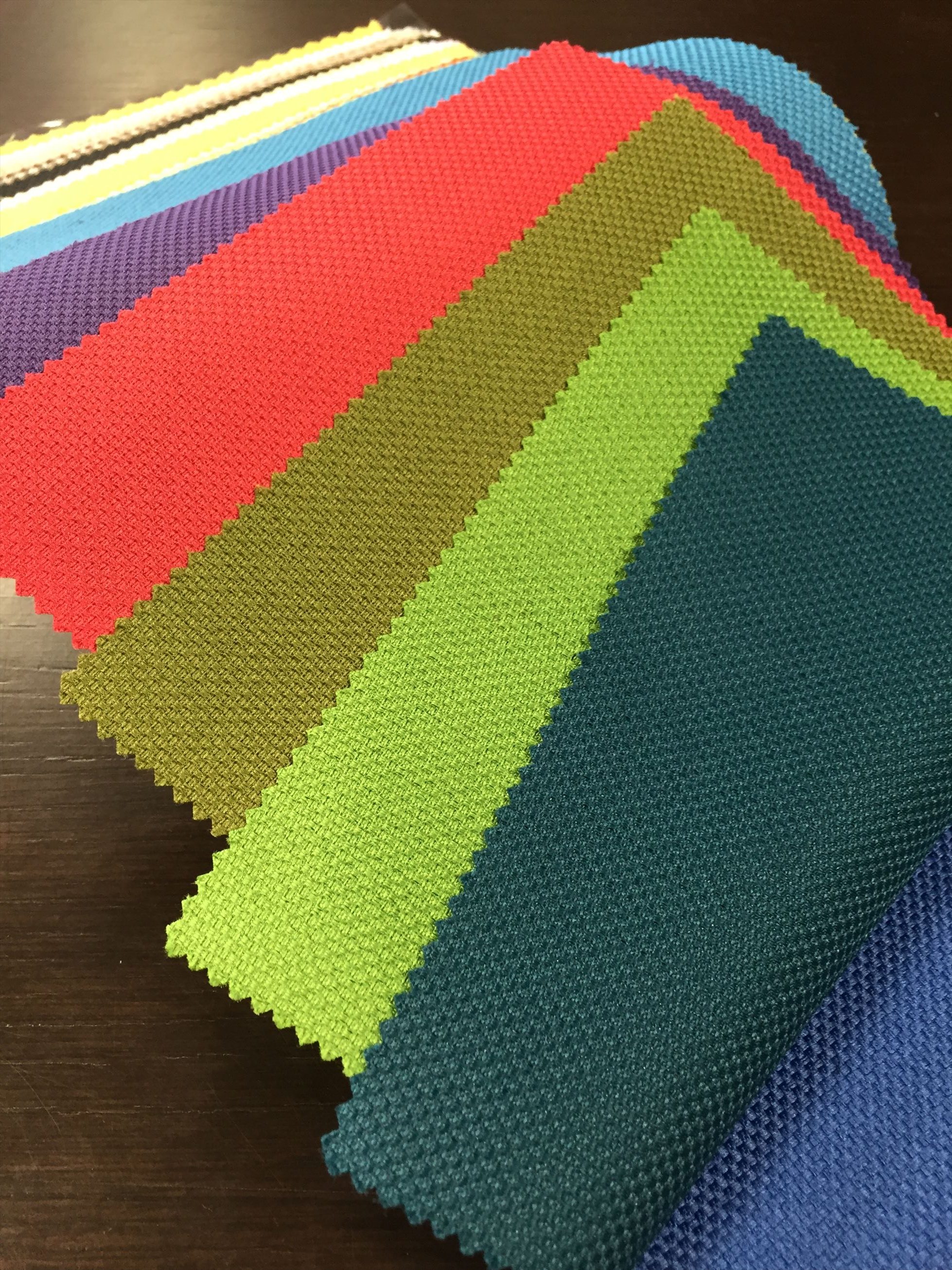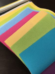 タチカワのロールクリーン『エブリ』の生地サンプルを見ていると、元気なカラーがたくさんあって楽しくなります!