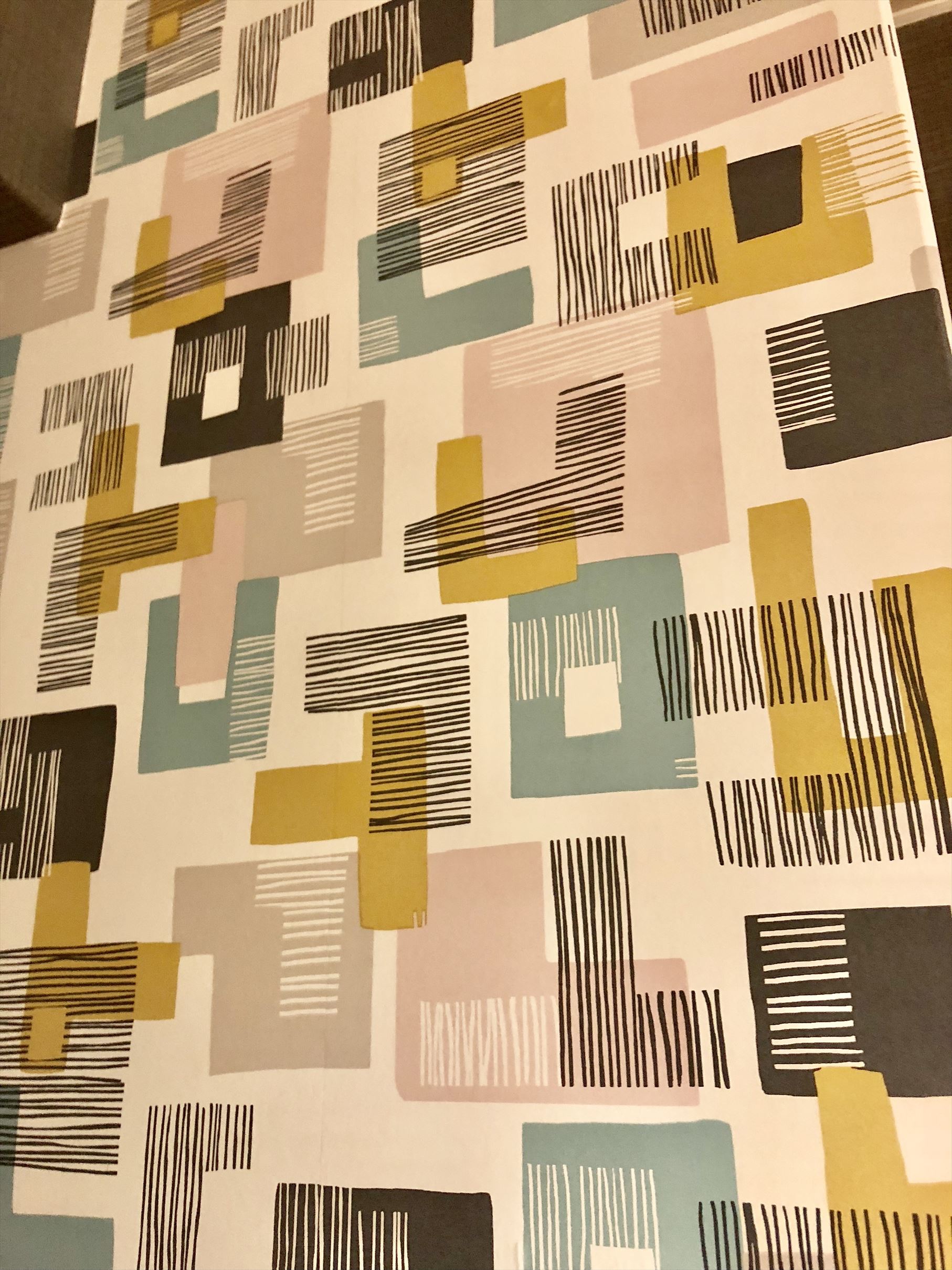 こんにちは、あにんつです。 カーテンコールの店内にはいくつか輸入壁紙が貼ってあるのですが、どれも素敵なので順番にご紹介しますね。 こちらはイギリスのブランドVILLANOVAの「Etta」です。 幾何学模様が楽しい柄で、アクセントクロスにピッタリですよ! 52cm幅 ¥19,500(税別)/本