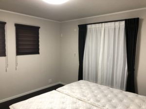 もちろんカーテンレールも房かけも黒で統一。カッコいい寝室になりました![]()