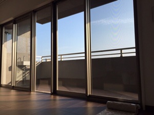 大きい掃き出し窓と腰窓に高層階なのでレースのみのシェードを付けたい、とのご希望でした。