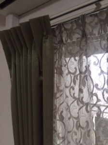 生地に光沢がある無地のドレープカーテンに華やかなレースを合わせました😌