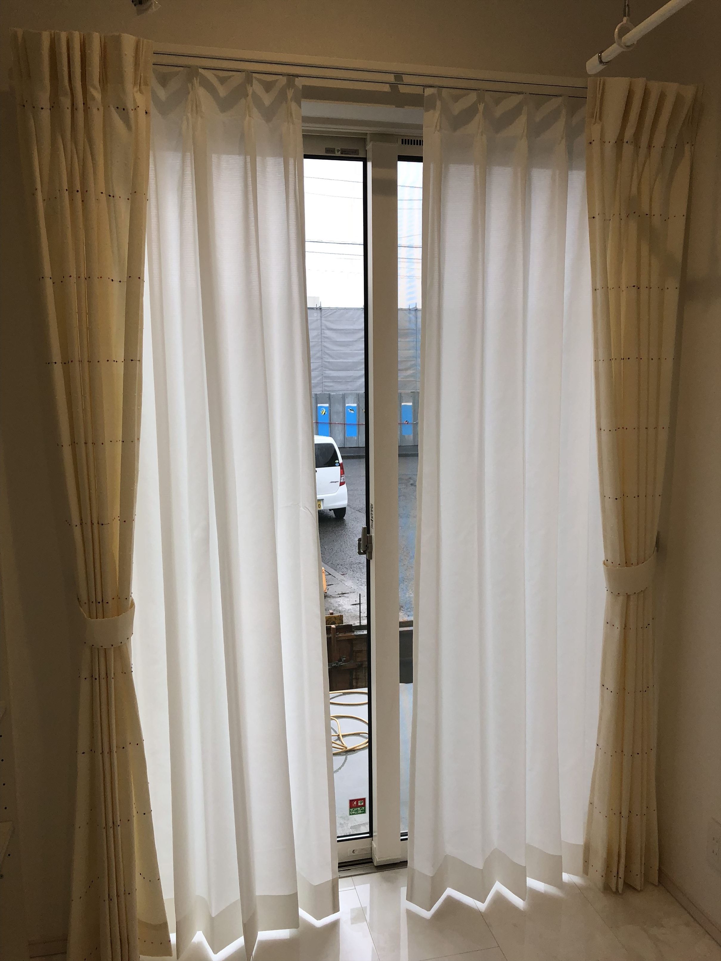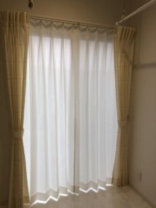 ちなみにこのとあるお宅のサンルームはお洗濯干場にもなるため、全く見えなくてもいいくらいとのご希望でしたので、このレースをお勧めしました。もちろん現地お打ち合わせの段階でお客様にもご確認頂きました。これなら下着を干しても安心ですね!