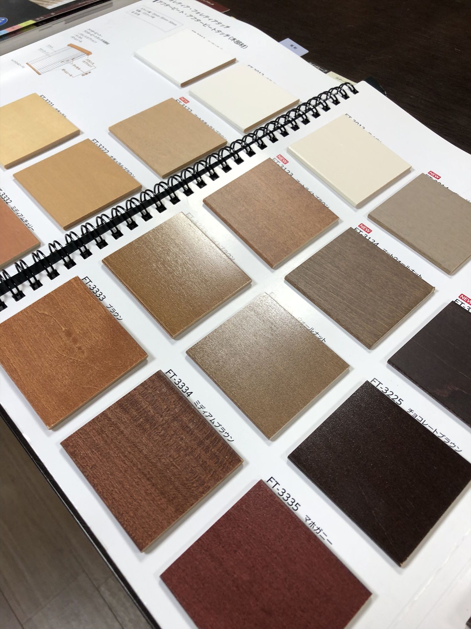 今回お持ちしておりませんでしたが、他のメーカーさんのものでもサンプルがありますのでお選び頂いたカラーに似たものがあればそちらもまた一度家で見て頂く事に致しました。