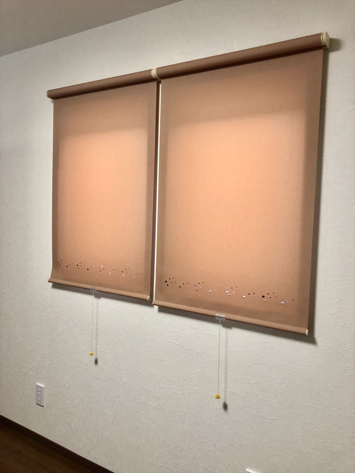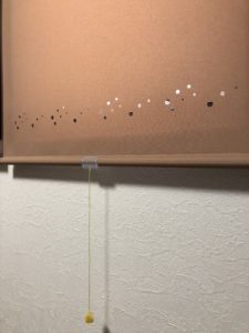 また二階のお部屋にはトーソーのロールスクリーンで、それぞれにポイントカットを施しました。プルコードもそれぞれにお選び頂きましたよ。カワイイですね〜
