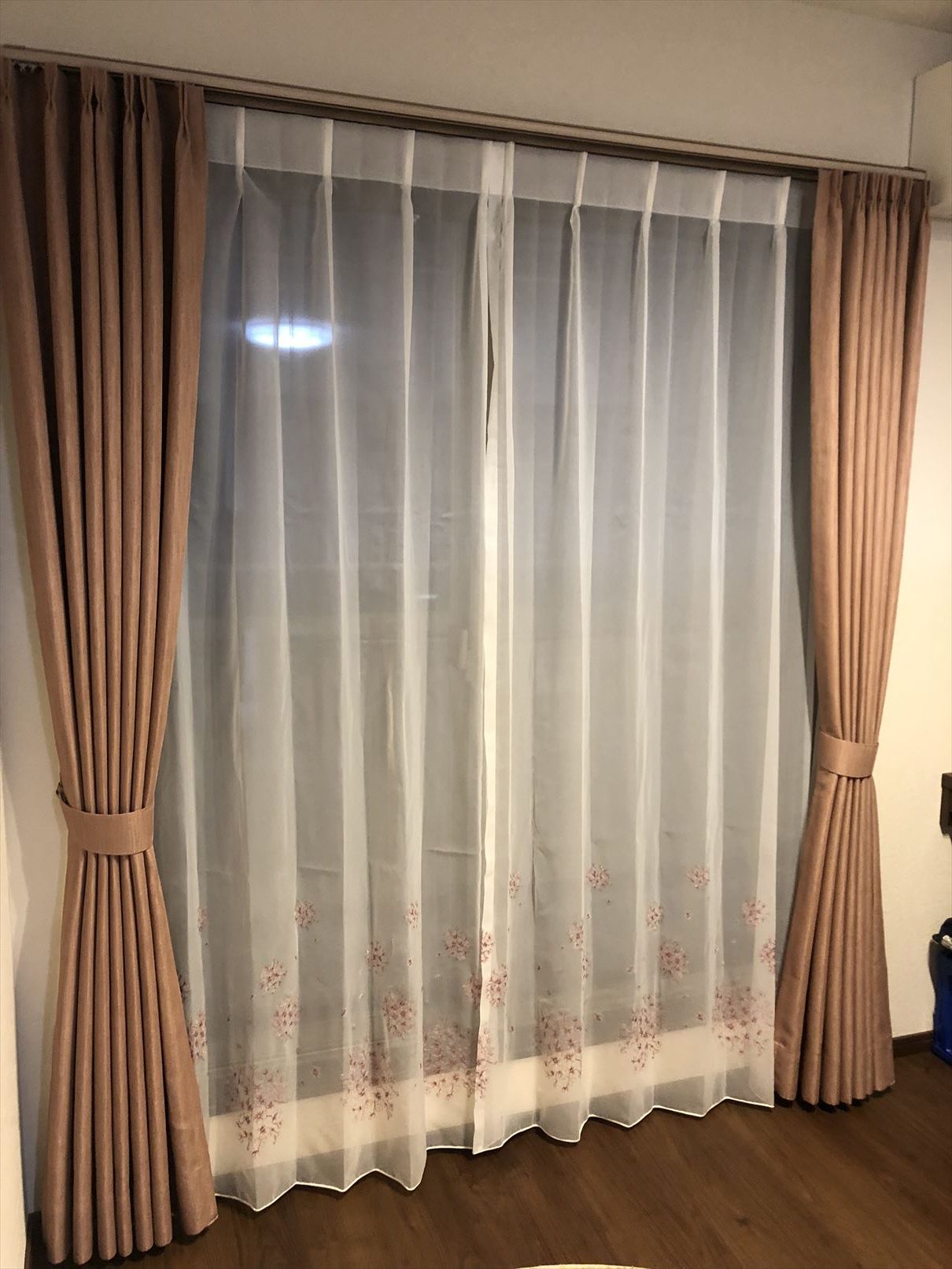 寝室には、先に付けたロールスクリーンの色に合わせた当店オリジナルカーテン&奥様が気に入られた刺繍の可愛いレースをお選び頂きました!現地で改めてサンプルをご確認頂きご発注です👌