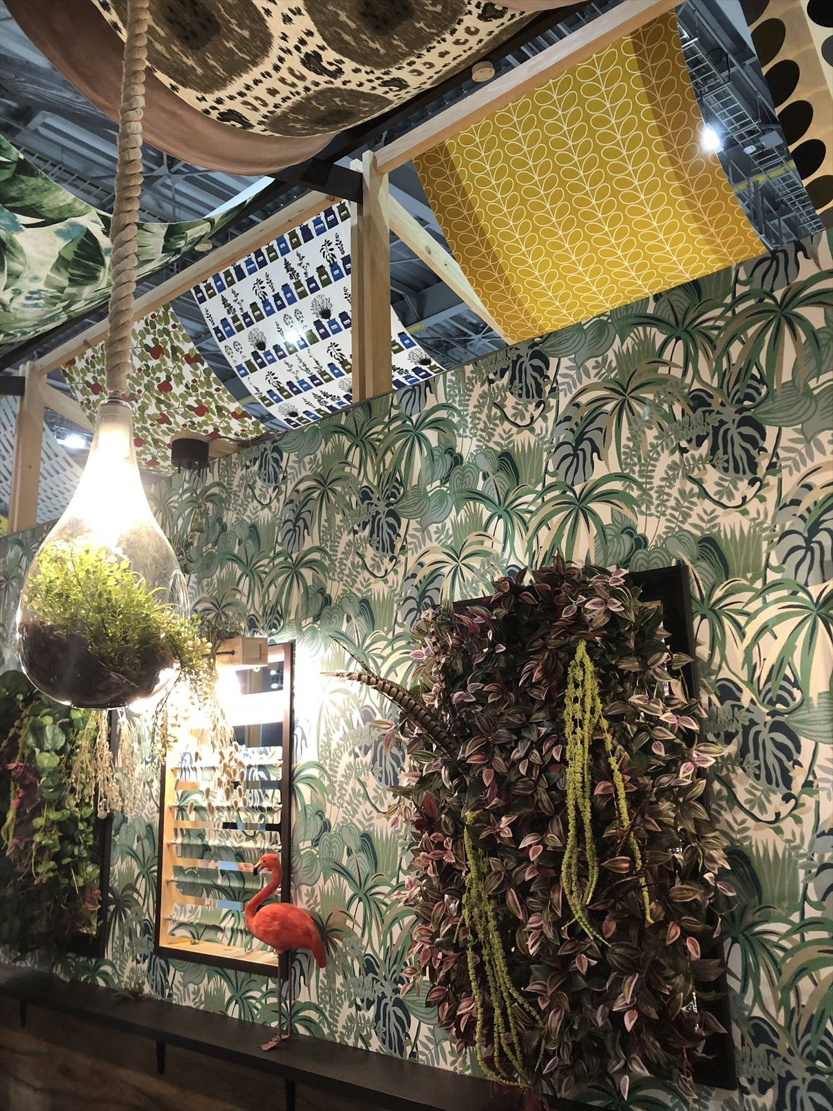 今流行りの「ボタニカル(植物系)」でゴリゴリにまとめたブースです!でもなぜだかとっても落ち着くんですよ。今回はカフェ併設なので、合間にちょっと一杯も出来ます