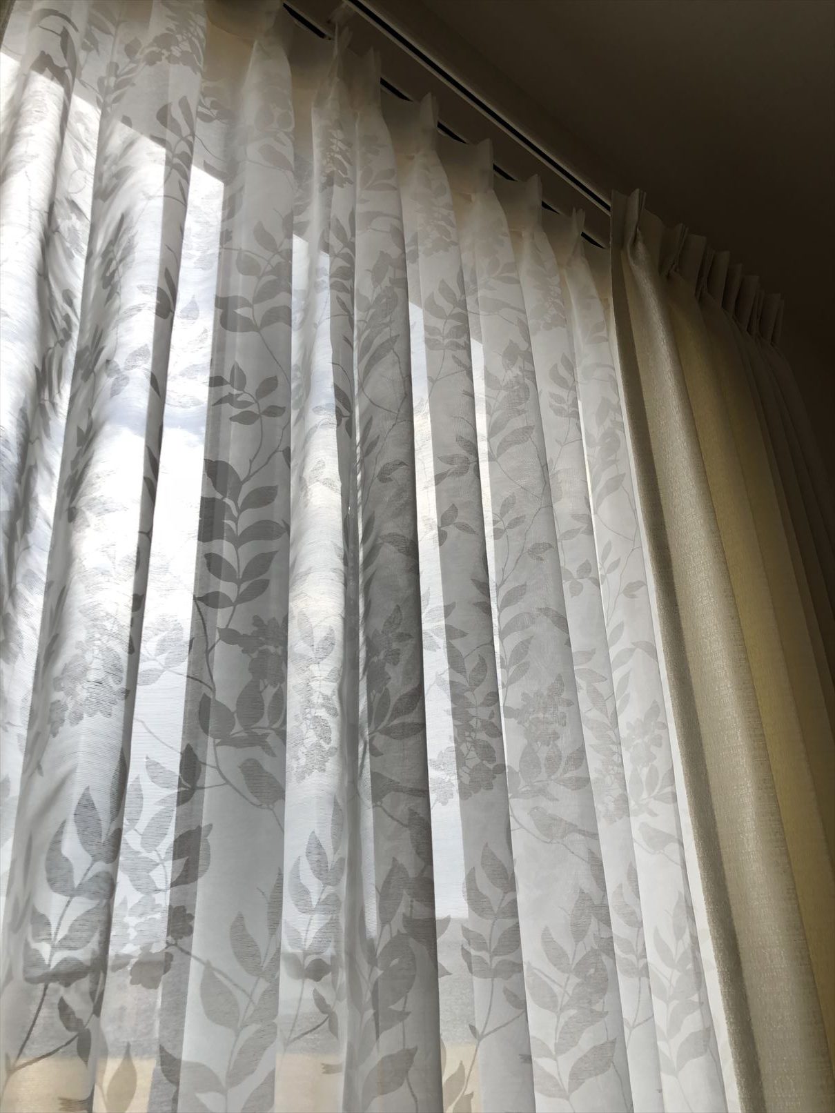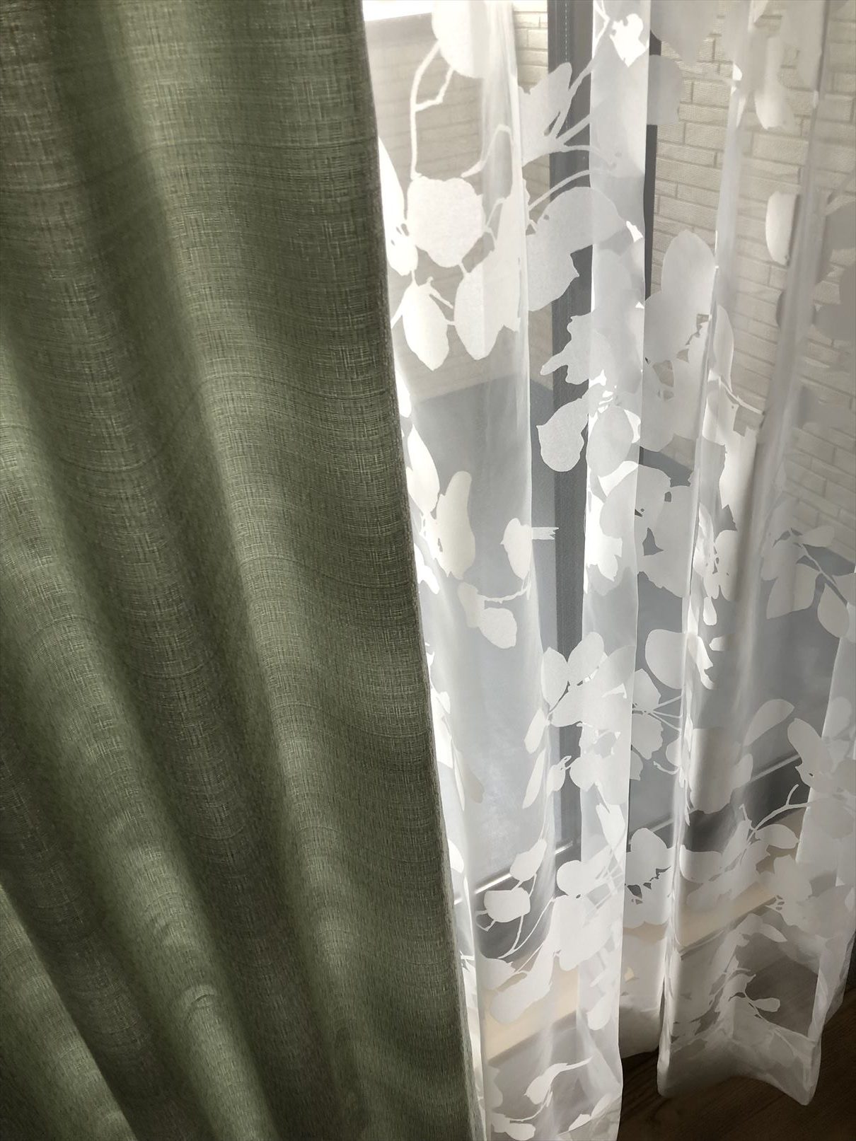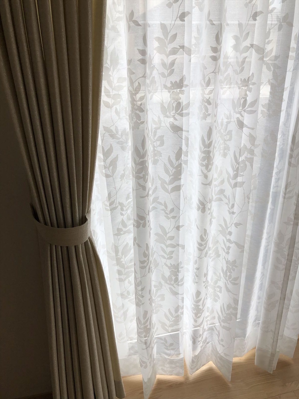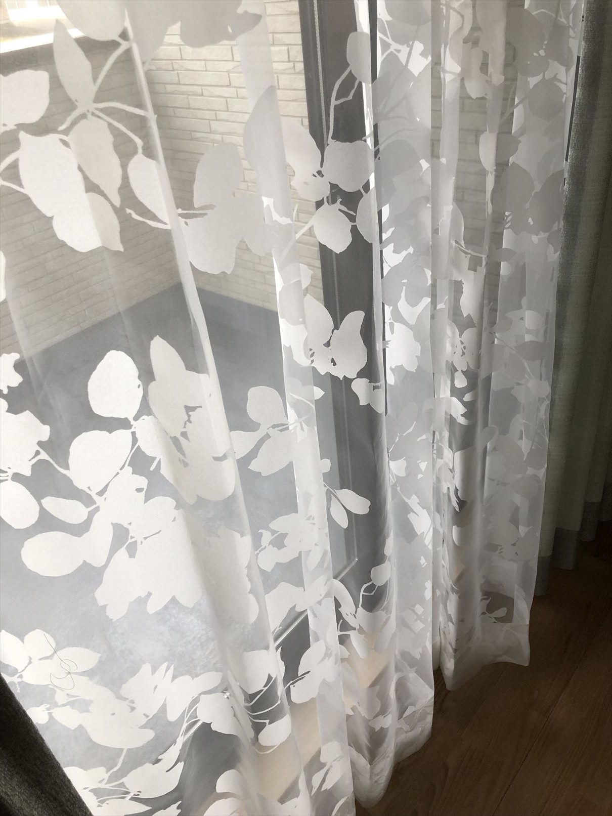 レースカーテンは葉っぱの柄のものをお選び頂きました![]()