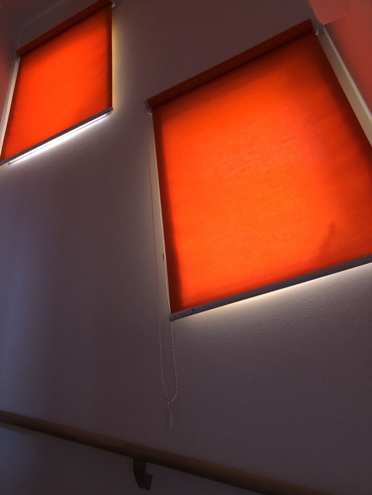 階段にはオレンジのロールスクリーン。