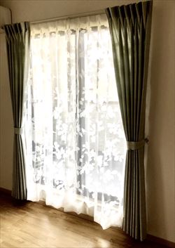 なんとこちらのカーテンの組み合わせは学生さんのお嬢様が全てお選び下さいました!