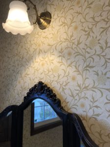 奥様のお部屋はスクロール。こちらもウイリアムモリスです柔らかな色合いが優しい印象です。