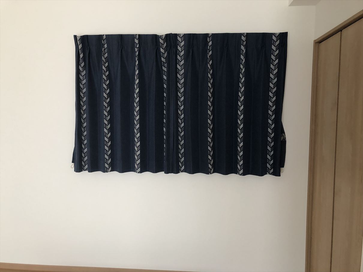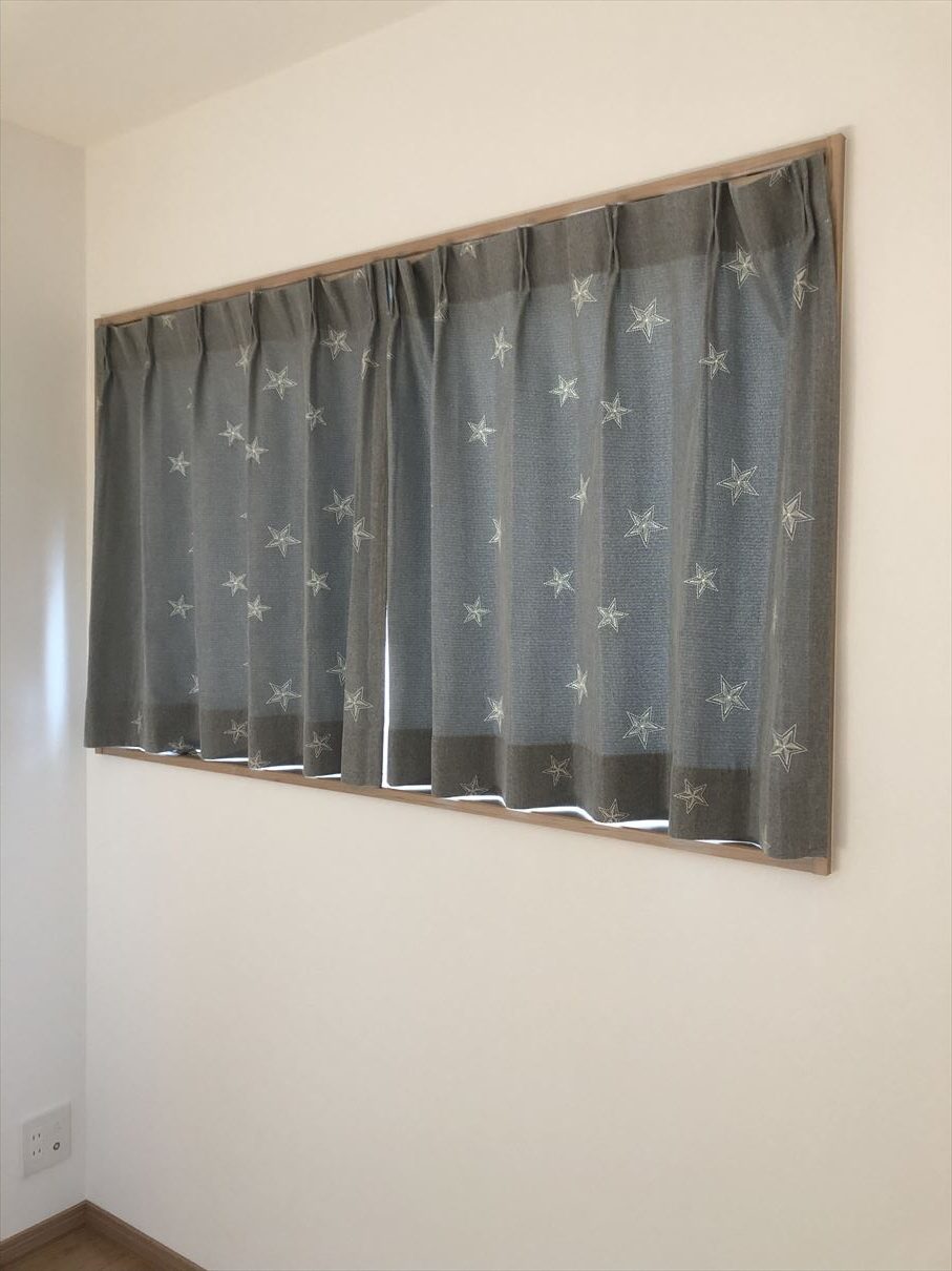 奥行きの長さの関係でどうしても窓枠と同じ所までレールが来てしまいましたので、カーテンを閉めた時にレールが隠れるように上部を立ち上げさせて頂きました![]()