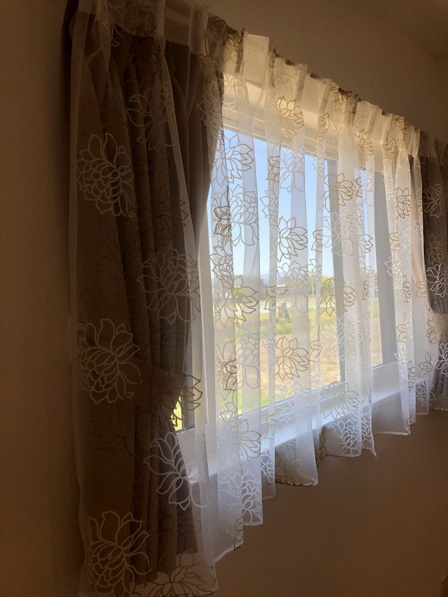 ドレープカーテンは腰窓の方が少明るめのお色のものになっております![]()