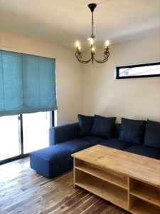 先日お納めしたTさまのところへ追加分のブラインドの採寸に行ったところ、リビングのデニムのソファが届いていました!😊