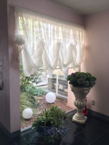 お店裏のエレベーターホールのシェードを夏仕様に替えました!