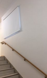 『階段のスペースがとても暑いので何かを付けて防ぎたい』と、ご依頼がありました。階段なので人の通りの邪魔にならないロールスクリーンで、遮熱効果がある機能的なものをお勧めしました。