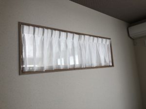 和室には少し高い位置に窓が有り、人の目線はありませんが、何かを付けた方が良いかな?と言う事でしたのでレースカーテンを窓枠に収まるように致しました。