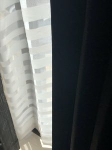 こちらの窓は位置は高いのですが、丁度カーテンの裾のあたりに目線がいくようになりますので、裾の折り返しは少し小さくさせて頂きました
