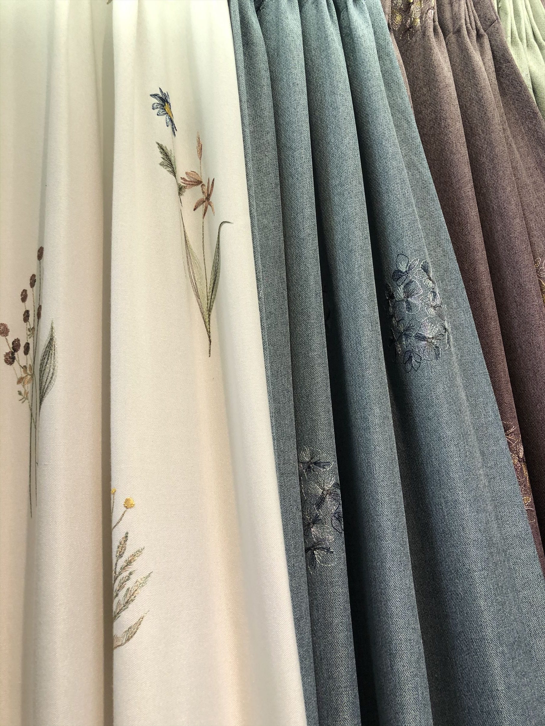 こんにちは、えんじです。 刺繍がとっても素敵なレースカーテンのサンプルが入荷致しました😊 花のパターンは色々あります 遮光のものもありますので寝室にも使いやすいタイプだと思います 他にも色々と合わせやすいものがございますのでまた一度お立ち寄り下さい😄