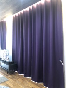 年末、リビングの掛け替えのカーテンでご相談頂いておりましたお客様の所へ納品に行って参りました😄お色も生地感もこだわって頂き、写真のような遮光のパープルの生地をお選び頂きました✨