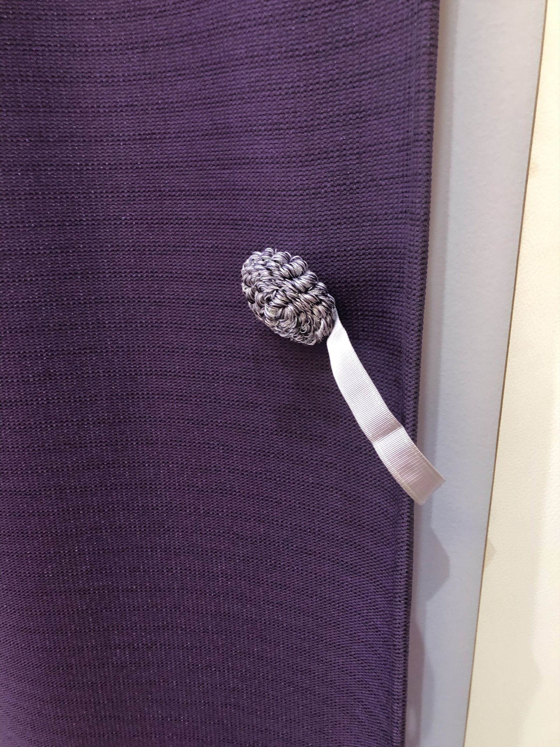 海外のMANAS-TEXの可愛いマグネットタッセルです❗カーテンにあわせてパープルのものをお選び頂きました🌼すごく可愛くてオシャレです✨